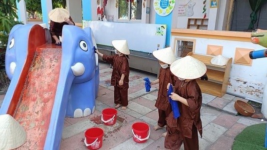 Ở trường ngoài các cô giáo trên lớp hằng ngày chăm sóc, dạy dỗ chúng mình còn có rất nhiều các bác, các cô nhân viên làm những công việc khác nữa đấy, ví dụ như các cô bác nhân viên nấu ăn chuyên chăm lo từng bữa ăn cho chúng mình, bác bảo vệ thì rất chăm chỉ, đảm bảo an toàn cho chúng mình....ngoài ra còn có một bác nhân viên thường xuyên giữ gìn vệ sinh trường, lớp cho chúng mình đấy, chính là bác lao công chăm chỉ. Hôm nay chúng mình cùng với các bạn lớp 5 tuổi A1 tập làm bác lao công để xem bác lao công hàng ngày phải làm những việc gì nhé.