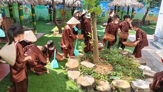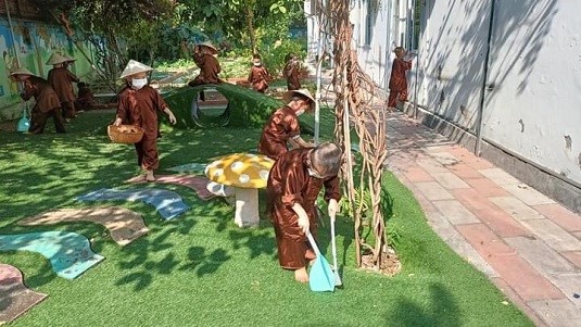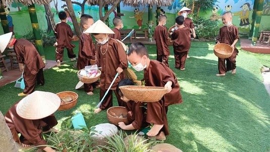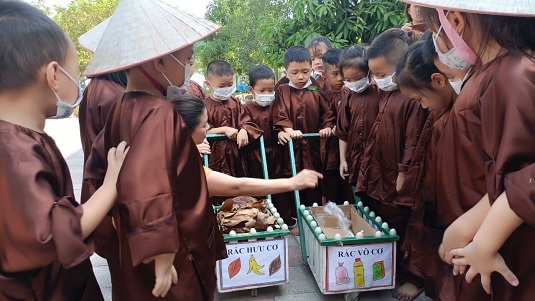 Cô cùng các bác lao công 5A1 phân loại rác nhé.
