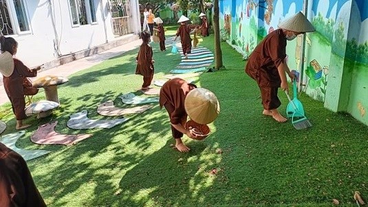 Bác lao công phải dọn vườn, quét lá thật sạch sẽ.