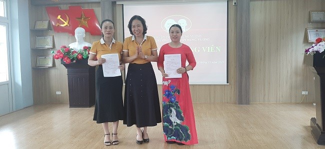 Đ/c Vũ Thị Thu Hà - Bí thư chi bộ trao Quyết định Kết nạp cho 2 Đảng viên mới