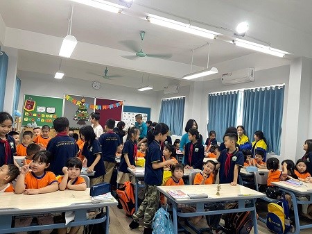 Ban giám hiệu, giáo viên, cùng cha mẹ và các bé khối 5 tuổi được trường đa cấp Xanh Tuệ Đức mời tham quan, giao lưu. Tại đây các bé được các thầy cô đón tiếp thân thiện, tổ chức cho các bé vui chơi rèn luyện thể lực, tham quan các phòng học, phòng chức năng, bếp ăn. Tại nhà ăn bán trú các bé được trải nghiệm một bữa ăn phụ ngon miệng. Đặc biệt các bé ăn xong thực hành quy trình rửa khay tuyệt vời. Trở về hội trường các bé được trò chuyện giao lưu với các thầy cô và các anh chị lớp 1 thật gần gũi, thân thương. Các bé được dự giờ học tiếng việt và toán của anh chị lớp 1. Đây là một hoạt động cô cùng ý nghĩa giúp các bé 5 tuổi tự tin khi bước vào lớp 1. Cũng là 1 hoạt động tuyên truyền đến toàn thể quý vị phụ huynh khối 5T có sự lựa chọn phù hợp nhất cho các bé vào hoc môi trường tốt nhất. Chúc cho các bé 5 tuổi luôn tự tin , vui vẻ khi bước vào lớp 1 nhé!