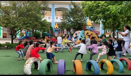 Năm học 2022-2023 tiếp tục thực hiện mô hình bữa ăn hợp lý đảm bảo dinh dưỡng kết hợp với tăng cượng vận động thể lực cho trẻ. Ngoài việc thay đổi hình thức ăn cho trẻ việc thiết kế thực đơn phong phú nhà trường còn trú trọng trò chơi vận động cho trẻ giúp trẻ phát triển cả về thể chất lẫn tinh thần.