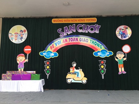 Thực hiện kế hoạch số 71/KH-MNHV ngày 20/1/2022 Kế hoạch trường Mầm non Hùng Vương về thực hiện chương trình “Tôi yêu Việt Nam” năm học 2022-2023. Trường Mầm non Hùng Vương tổ chức cho trẻ mẫu giáo chương trình sân chơi “Bé với an toàn giao thông” nhằm nâng cao hiệu quả giáo dục an toàn giao thông cho trẻ mẫu giáo, đẩy mạnh công tác tuyên truyền phổ biến, giáo dục nâng cao kiến thức cho giáo viên, cha mẹ và trẻ về Luật giao thông, ý thức trách nhiệm và hành vi ứng xử có văn hóa khi tham gia giao thông. Chương trình được tổ chức cụ thể như sau: