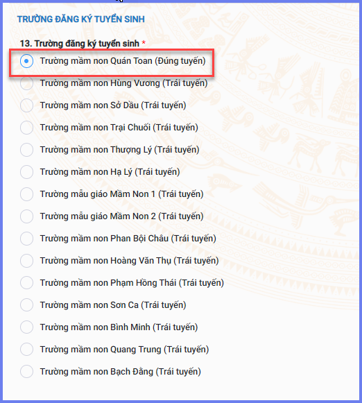 - Tra cứu kết quả: PHHS tra cứu kết quả đăng ký tuyển sinh.