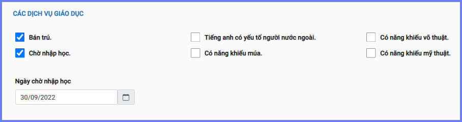 - Đăng ký tuyển sinh: PHHS đăng ký tuyển sinh cho Học sinh.
