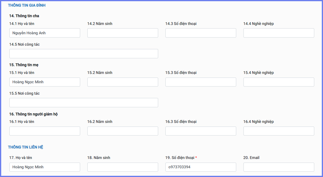 Bước 5: Phụ huynh nhập đầy đủ, chính xác thông tin của học sinh vào Phiếu thông tin học sinh.