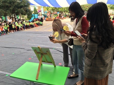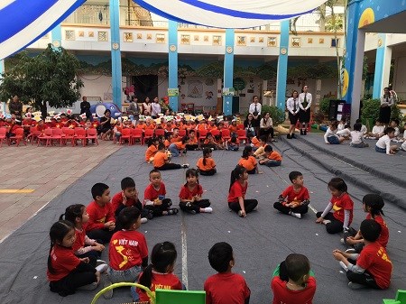 Quan sân chơi, trường không chỉ giúp các bé nhận diện một số tình huống giao thông, các vi phạm thường gặp mà còn tổ chức phần thi của phụ huynh học sinh để có sự vào cuộc của cả nhà trường và gia đình giúp giáo dục trẻ một cách toàn diện.